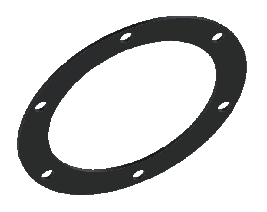 Kraftig flangepakning i gummi til 6" rørdele. Sikrer tæt og driftssikker samling mellem flanger på pumper, bøjninger, forlængerstykker og fylderør.